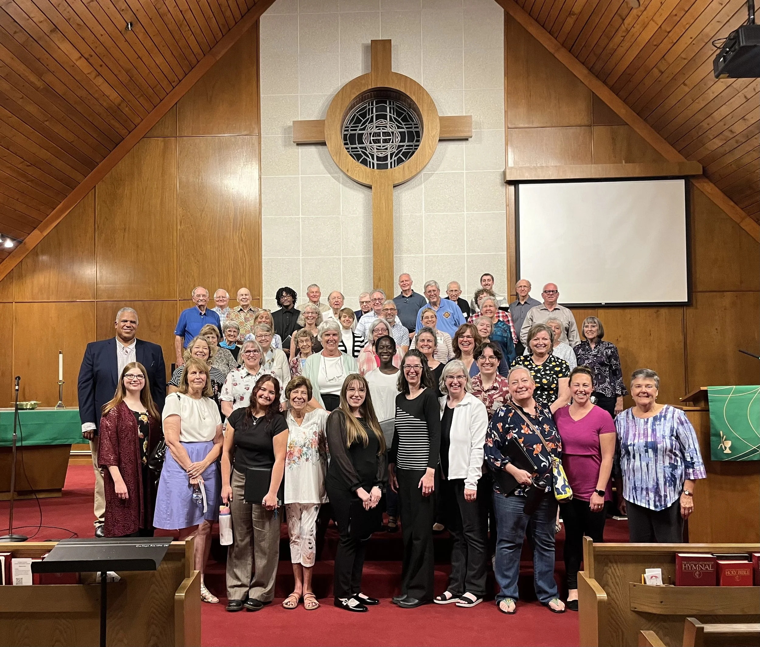 On September 16, 2024, composer, organist and wonderful song-leader Mark Miller came to College Avenue UMC for an afternoon of Songs of Love, Hope and Joy. Pictured is the joint choir from College Avenue UMC, First UMC, First Presbyterian and Congregationalist.